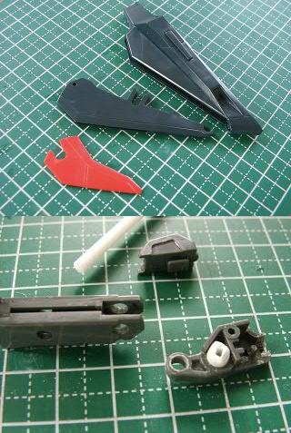 ひざ側の出っ張りをカットし約3㍉の穴を開けプラ棒を差込めば何とかなりそう、
