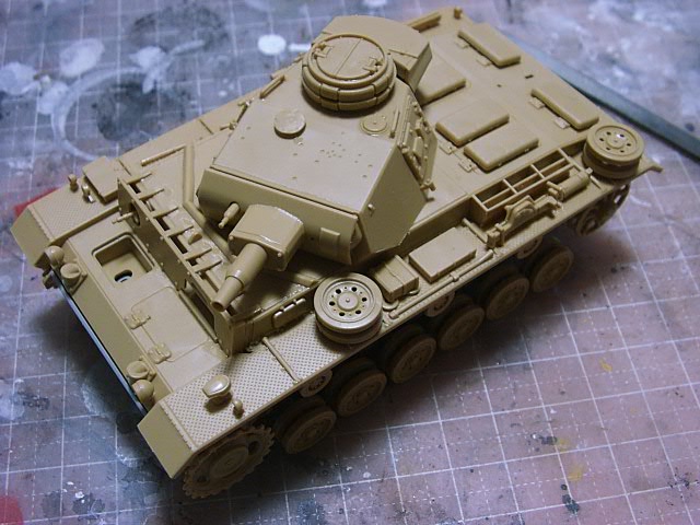 乗っけて細切りプラ版で固定ラック風に貼り付け、ダークイエローでチュニジア仕様にして車体は完成。